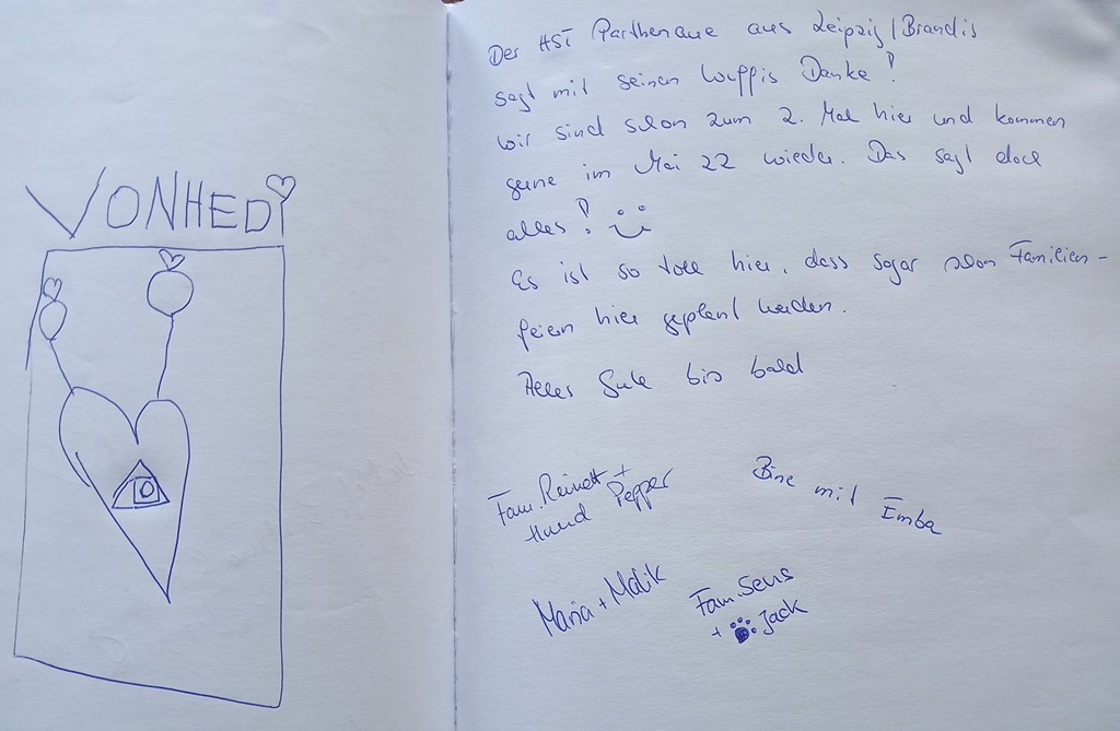 Der HST Parthenaue aus Leipzig/Brandis sagt mit seines Wuffis - Danke! Wir sind schon zum 2. Mal hier und kommen gerne im Mai 22 wieder. Das sagt doch alles! Es ist so toll hier, dass sogar schon Familienfeiern hier geplant werden. Alles Gute bis bald ...