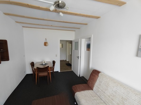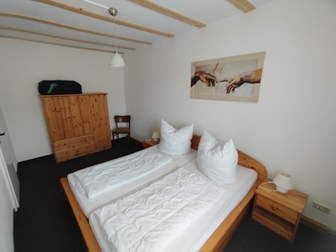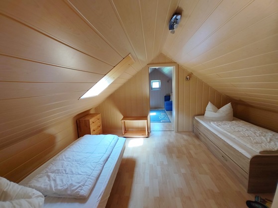 Die geräumige Ferienwohnung über zwei Etagen, hat 2 Badezimmer und bietet Platz für ca. 6 Personen. Außerdem gibt es ein Wohnzimmer, eine Küche und mehrere Schlaf- bzw. Aufenthaltsräume.